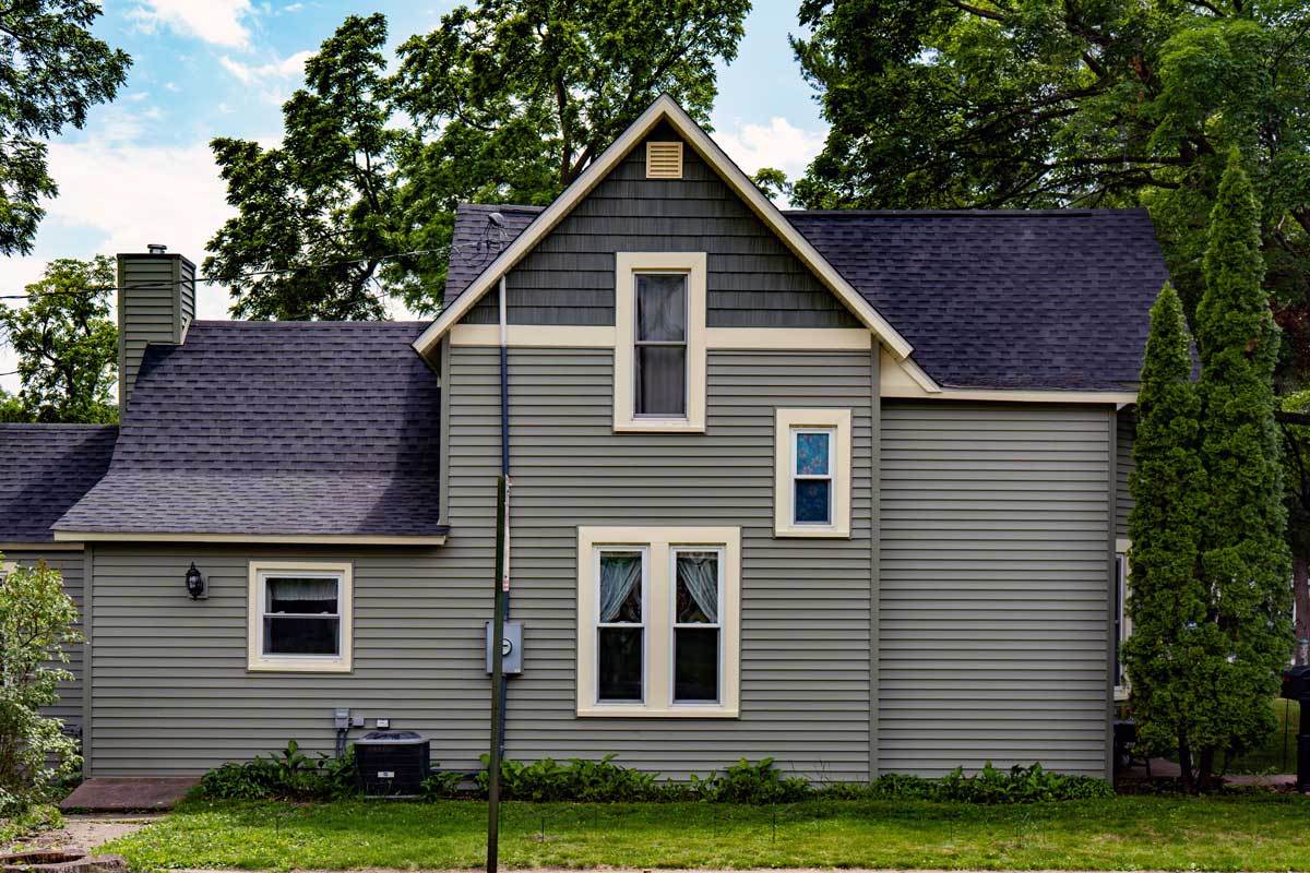 This classic Eau Claire home received a full vinyl siding upgrade, transforming the exterior into something clean, sharp, and built to last. The team installed Norandex Cedar Knolls D4 siding in Smoke, paired with white ACM wraps and details for crisp contrast and a low-maintenance finish.